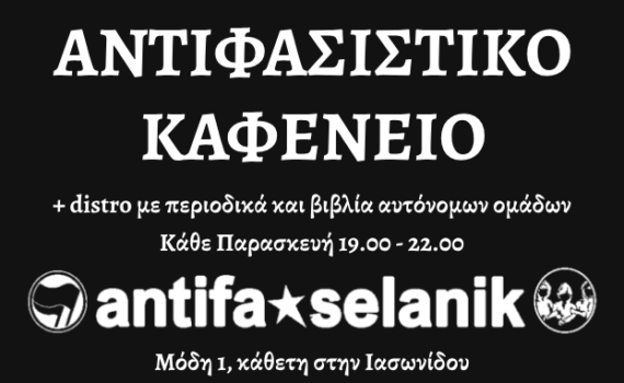[Καφενείο στο στέκι του antifa selanik, κάθε Παρασκευή 19.00 - 22.00] Αντιφασιστικό καφενείο // κάθε Παρασκευή 19.00 – 22.00 // Μόδη 1
