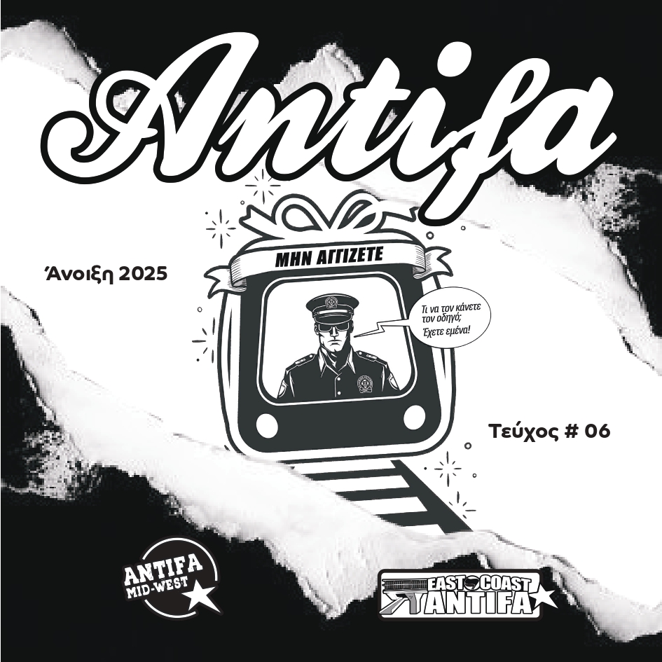 Έντυπο δρόμου των πυρήνων antifa mid-west & antifa east coast, που κυκλοφόρησε το Μάρτιο του 2025 σε 1.200 αντίτυπα. Μοιράζεται χέρι με χέρι σε σχολεία των ανατολικών και δυτικών γειτονιών της Θεσσαλονίκης. Αν θέλεις να λάβεις το έντυπο ή να μας πεις τη γνώμη σου γι’ αυτό, μην διστάσεις να μας στείλεις στο antifaeastcoast@gmail.com.