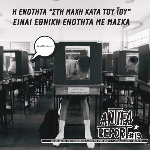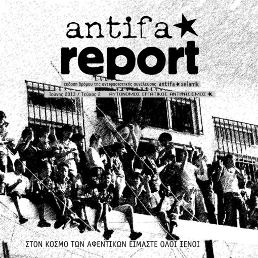 Το έντυπο δρόμου antifa report #06 τυπώθηκε το Νοέμβριο του 2014. Μοιράζεται σε σχολεία της θεσσαλονίκης και χέρι με χέρι από τη συνέλευση antifa selanik. Κυκλοφορεί σε στέκια, καταλήψεις και antifa συναυλίες. Αν δεν το πετύχεις σε κάποιο από τα παραπάνω μέρη, στείλε μας ένα mail στο antifasln@yahoo.gr.