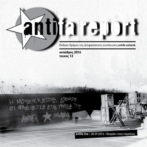 Το έντυπο δρόμου antifa report #17 τυπώθηκε το Φεβρουάριο του 2019, σε 3.000 αντίτυπα. Μοιράζεται σε σχολεία της θεσσαλονίκης και χέρι με χέρι από τη συνέλευση antifa selanik. Κυκλοφορεί σε στέκια, καταλήψεις και antifa συναυλίες. Αν δεν το πετύχεις σε κάποιο από τα παραπάνω μέρη, στείλε μας ένα mail στο antifasln@yahoo.gr.