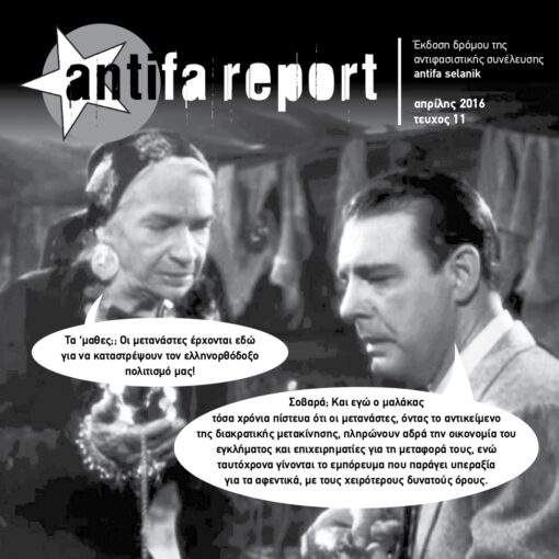 Το έντυπο δρόμου antifa report #17 τυπώθηκε το Φεβρουάριο του 2019, σε 3.000 αντίτυπα. Μοιράζεται σε σχολεία της θεσσαλονίκης και χέρι με χέρι από τη συνέλευση antifa selanik. Κυκλοφορεί σε στέκια, καταλήψεις και antifa συναυλίες. Αν δεν το πετύχεις σε κάποιο από τα παραπάνω μέρη, στείλε μας ένα mail στο antifasln@yahoo.gr.