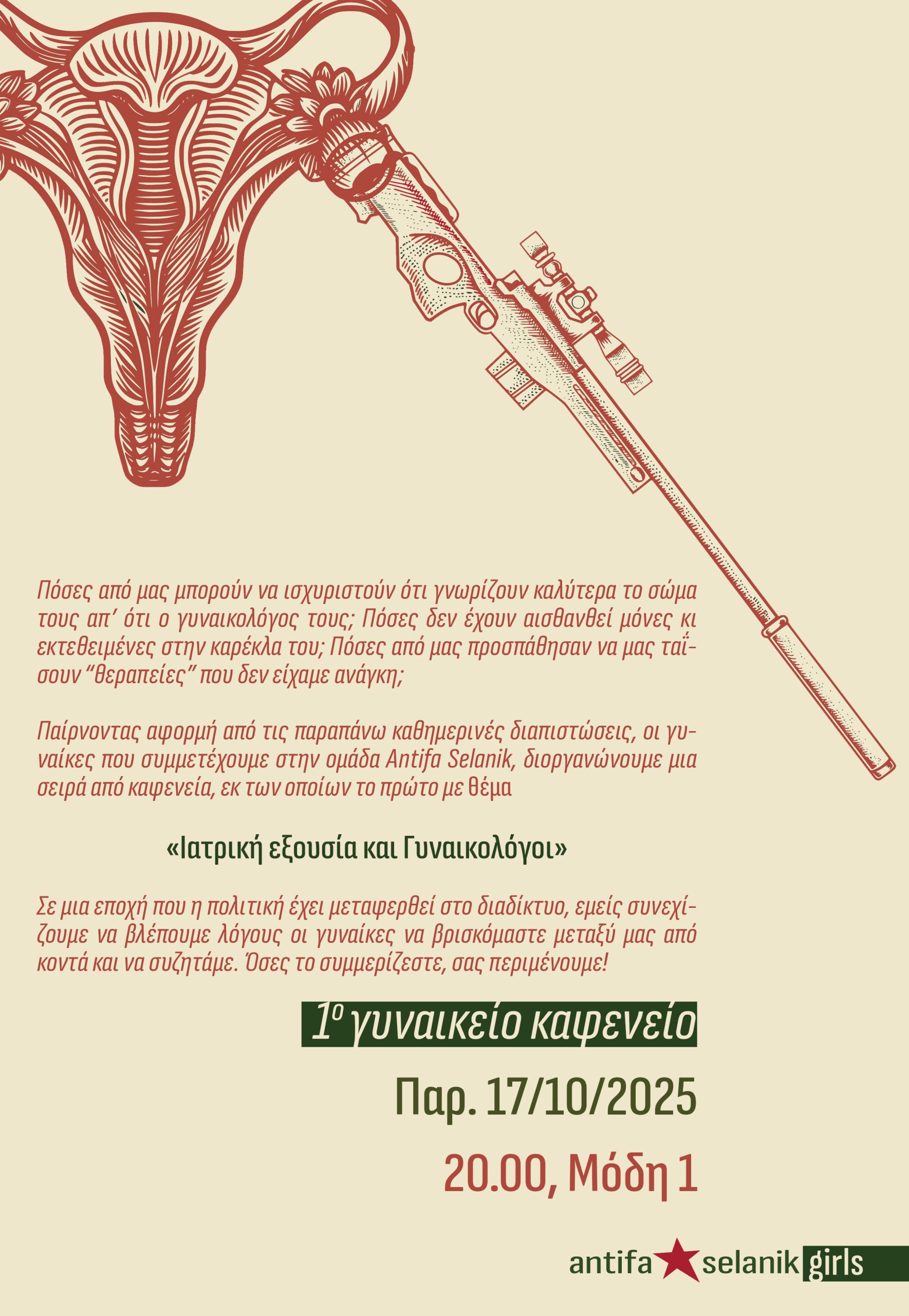 Παίρνοντας αφορμή από τις παραπάνω καθημερινές διαπιστώσεις, οι γυναίκες που συμμετέχουμε στην ομάδα antifa selanik διοργανώνουμε μια σειρά από καφενεία, εκ των οποίων το πρώτο με θέμα: