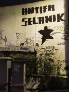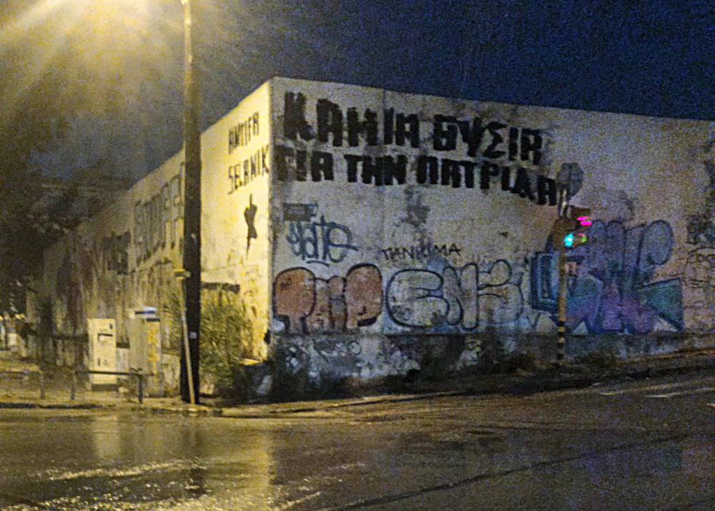 [Roller graffiti που έκανε το antifa selanik στη συμβολή των οδών Κλαυδιανού και Θερίσου, τον Ιούνιο του 2022]