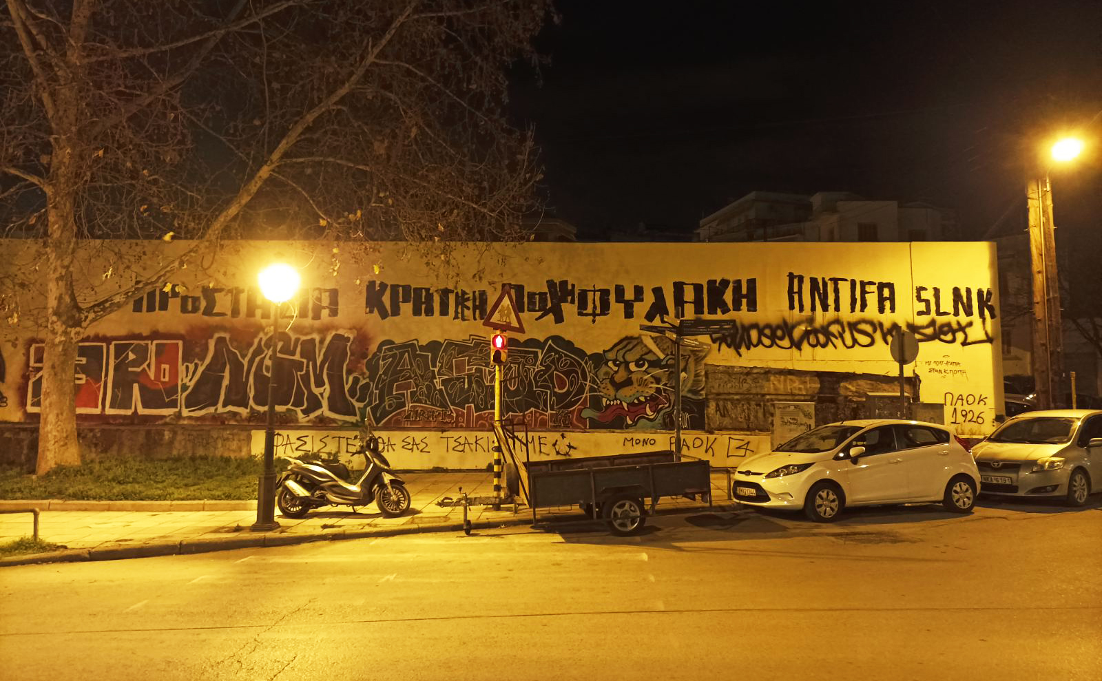 [Αφίσα και roller graffiti του antifa selanik το Μάρτιο του 2024]