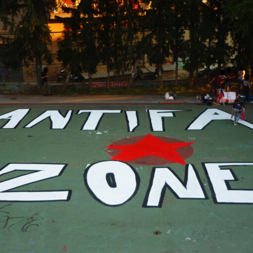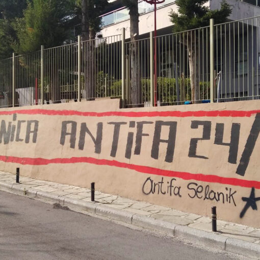 Σπρέι στους τοίχους της Α. Πόλης ενάντια στην καραντίνα, το Δεκέμβριο του 2020.